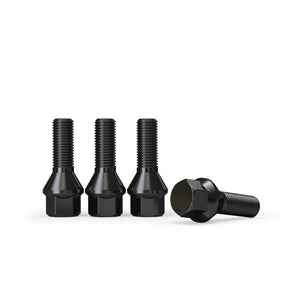 10PCS Mercedes C Class AMG W201 W203 Extended Wheel Bolts - M12X1.5 R12 Ball Seat Black