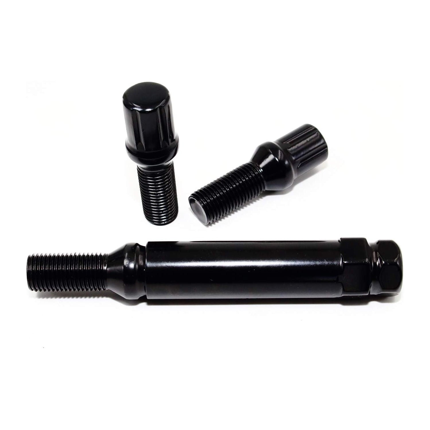 20PCS + Key Audi Volkswagen 37mm Spline Drive Extended Wheel Bolts - M14X1.5 Black